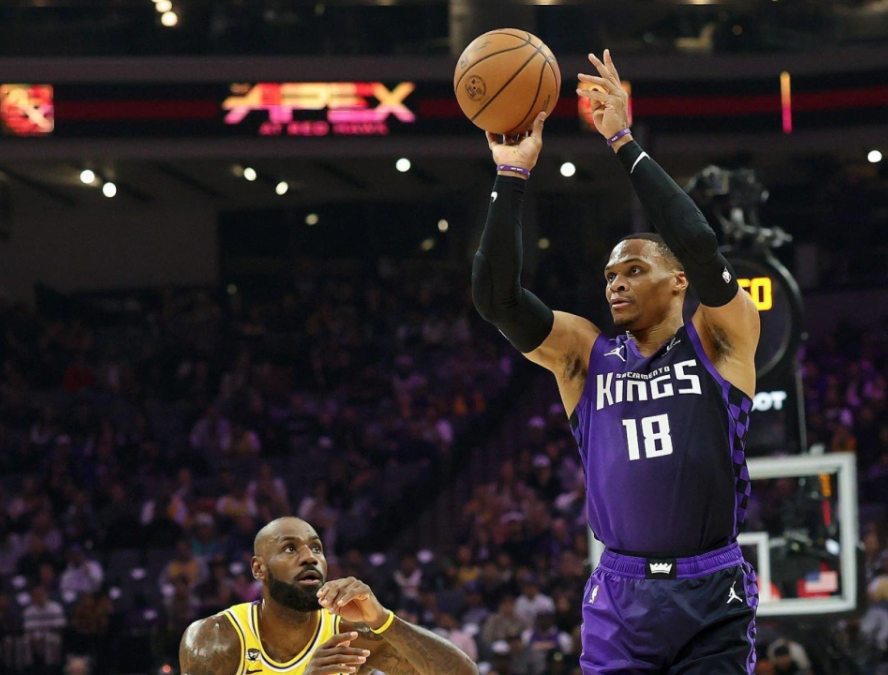 回顾一下比赛,开场老詹暴扣+上篮连续拿分,东契奇反击打停国王。暂停回来威少跳投,老詹弹无虚发,东契奇连续单打帮湖人守住领先优势。德罗赞和威少在中段开始发力,东契奇回应三分球,但后半段风云突变:威少喂饼阿丘瓦上篮,喂饼埃利斯轰三分,德罗赞造杀伤,拉文内突外投反超,第一节打完,湖人28-32国王。湖人替补进攻完全哑火,攻防都没有保障。进入第二节,蒙克突然下起三分雨拉开分差,艾顿吃饼,东契奇单打威少,蒙克续上三分球!中段东契奇又开始闷头往内线冲,蒙克和威少下三分雨回应。